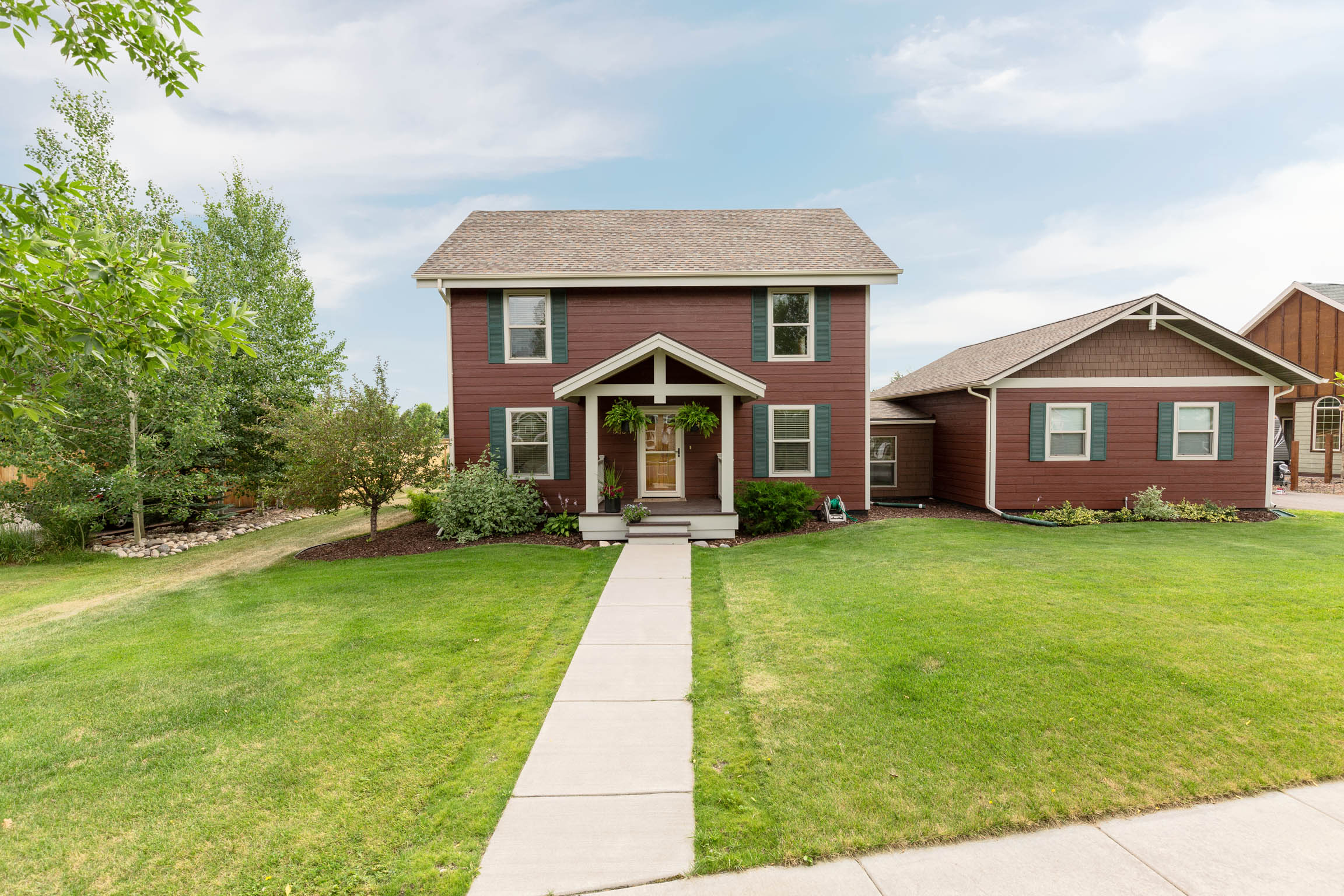 Welcome to this updated home located in the Landmark Subdivision on over 1/2 an acre in Belgrade, Montana. This 3 bed/2 bath home has 2 bed, 1 bath on the main floor and master suite + flex space or family room upstairs. Enjoy the open concept of living, dining, and kitchen on the main floor. The gas fireplace with vaulted ceilings add to the ambiance of this adorable home. The kitchen has updated counter-depth appliances and a pantry cupboard. This Belgrade home was constructed with SIP Panels and is very energy efficient. You will love the large backyard concrete patio. There is a lot of extra parking on the side of this home for your camper in the summer and a concrete pad in the backyard is ready for a shed. Enjoy a huge, mostly fenced backyard with established grape vines and raised garden beds. Don’t miss the virtual walk-through tour link!